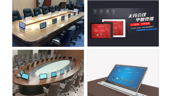 系統組成由:無紙化會議服務器+一體化觸摸升降屏+視頻信號編碼器+擴聲系統+大屏幕視頻顯示等構成。